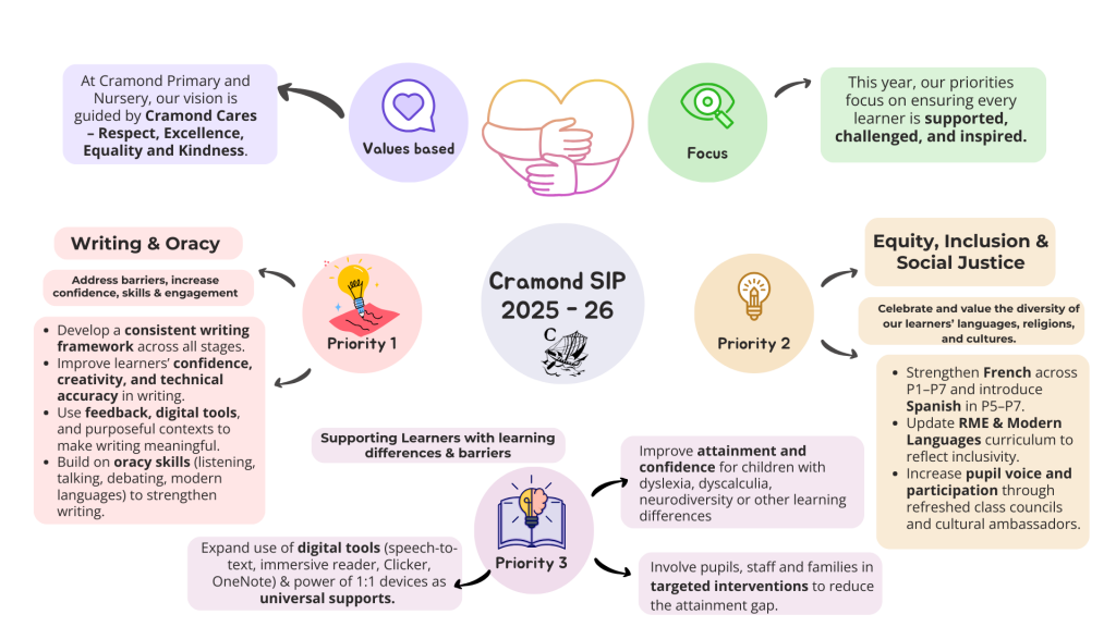 School Improvement *SIP School Improvement plan & SQR School Standards & Quality Report: See links to both SIP & SQR parent versions below. School improvement plan 2025-26 infographic Cramond_SIP_2025-26_Parent_Summary_PresentationDownload Cramond_SQR_2024-25_Parent_Summary_PresentationDownload CRAM-SIP-2024-25Download SQR-Cramond-session-23-24Download See links below to school & nursery inspection reports, June 2024 cramond-school-summarised-inspection-findingsDownload cramond-Nursery-summarised-inspection-findingsDownload cramond-letterDownload