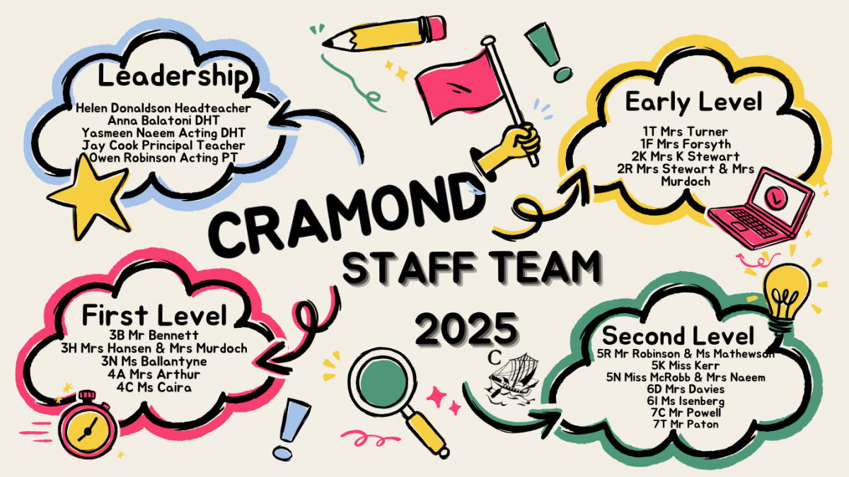 Principal Teacher, Support for learning, attainment & assessment: Jay.cook@cramond.edin.sch.uk (currently on secondment to Dalmeny, returns Dec 2025)